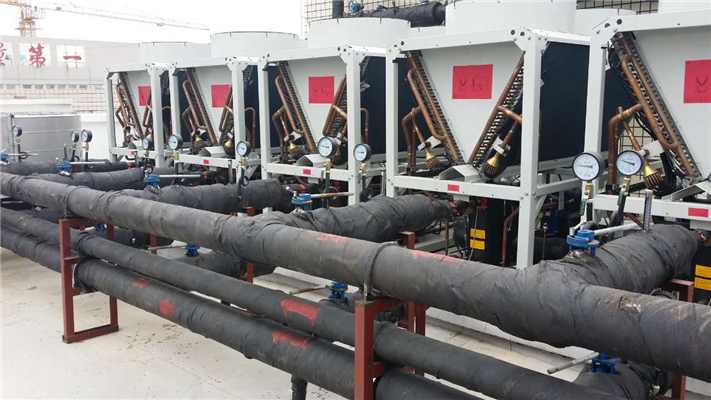 陜西TCL中央空調--風冷模塊機組分為單冷型和熱泵型,其中熱泵型風冷模塊機組集制冷、制熱功能于一體、即可供冷,又可供熱,能實現夏季降溫,冬季采暖,一機多用。因此,風冷熱泵機組通常是既無供熱鍋爐、又無供熱熱網或其它穩定可靠熱源,卻又要求全年空調的暖通工程設計中優先選用的方案,該機組可與風機盤管或柜式、吊頂式空氣處理機以及新風機組一起組成半集中式空氣調節系統,具有風機盤管系統的諸多優點,布置靈活,外形美觀、節省建筑空間、調節方便,可以單獨停、開而不影響其它房間,運行噪聲低等特點。